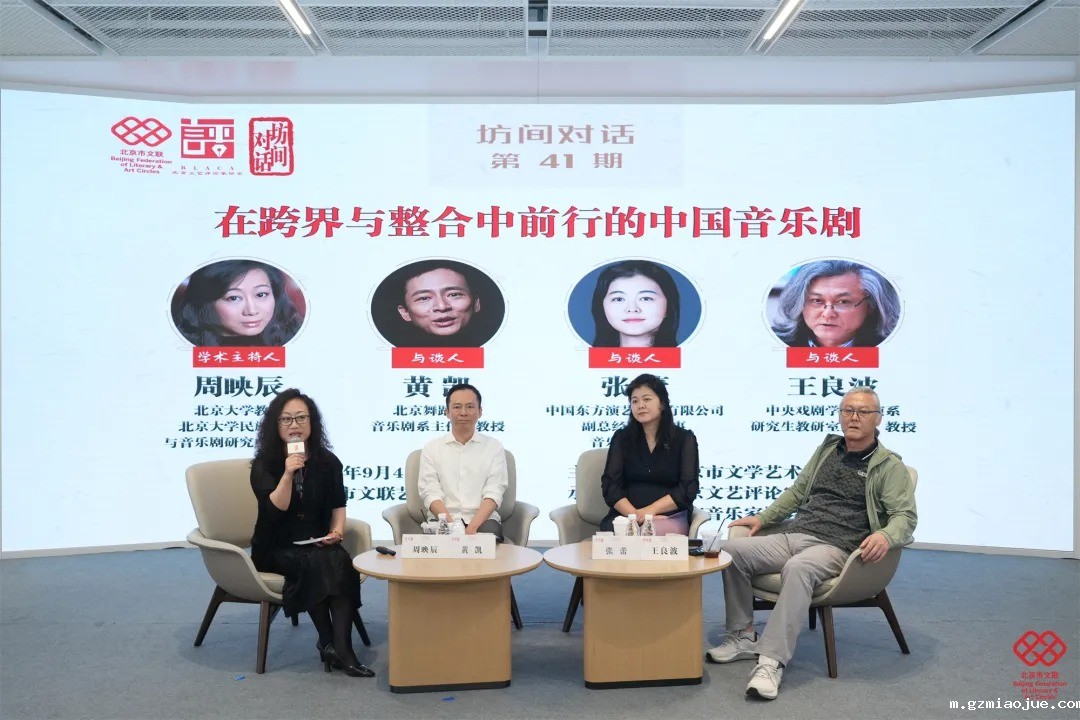 十年来,音乐剧市场蓬勃发展,多元化的原创作品层出不穷,生动展现了音乐剧这一艺术形式的包容性与丰富性。9月4日,由北京市文联主办,北京文艺评论家协会、北京音乐家协会承办的文艺评论系列学术对谈活动“坊间对话第41期:在跨界与整合中前行的中国音乐剧”举办。活动邀请北京大学教授、北京大学民族音乐与音乐剧研究中心主任周映辰担任学术主持,北京舞蹈学院音乐剧系主任、教授黄凯,中国东方演艺集团有限公司副总经理、董事、音乐剧团团长张蕾,中央戏剧学院导演系研究生教研室主任、教授王良波,就中国音乐剧创新发展过程中美学品质的提升等话题展开对谈。
